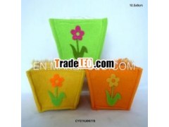 Felt box with sewed inner polybag, used as flower pot, with flowerstickassorted sizes and colors